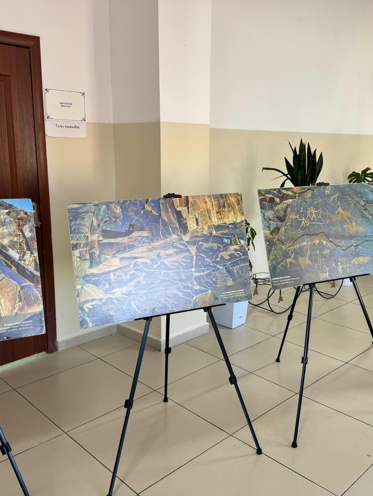 The exhibition featured photographs of the unique petroglyphs of the Tanbaly archaeological landscape.
