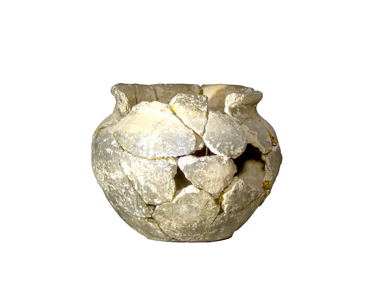 Құмыра тәрізді ыдыс, саз балшықпен жасалған, айқын ерекшеленіп жасалған, мойны тегіс, жиектері сыртқа қарай тартылған, беткі қабаты тегіс емес кедір-бұдыр, бірнеше түсті көруге болады қара, қою сұр, қоңыр түсті. Қиыршық құм тасты саз балшықтан жасалған. Бұл қыш ыдыстар өндірісінде қолданылатын материал. Бұл саз балшықтың ішінде кездесетін әртүрлі құмды, тасты немесе басқа минералды бөлшектерде бар. Бұл қоспалар қыштан жасалған бұйымның беріктігін арттырып, оны пісіру кезінде жақсы қалыптасуына ықпал етеді.