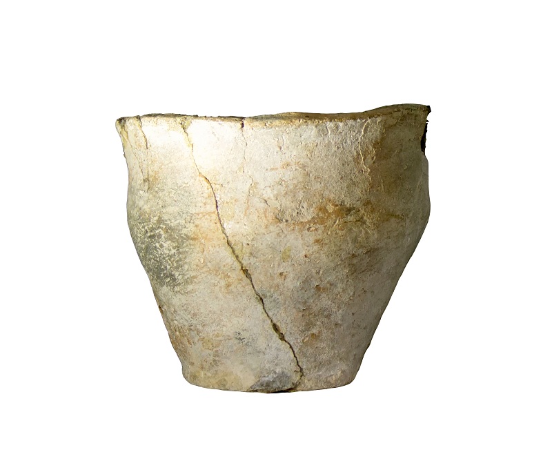 Әшекейленбеген, құмыра тәрізді саз балшықтан жасалған қыш ыдыс, Пішіні иығы дөңгелек, табаны қалы. Мойны сыртқа тартылып жасалған.Түсі қоңыр, қара. Саз балшыққа қиыршық құм-тас қосып жасалған.