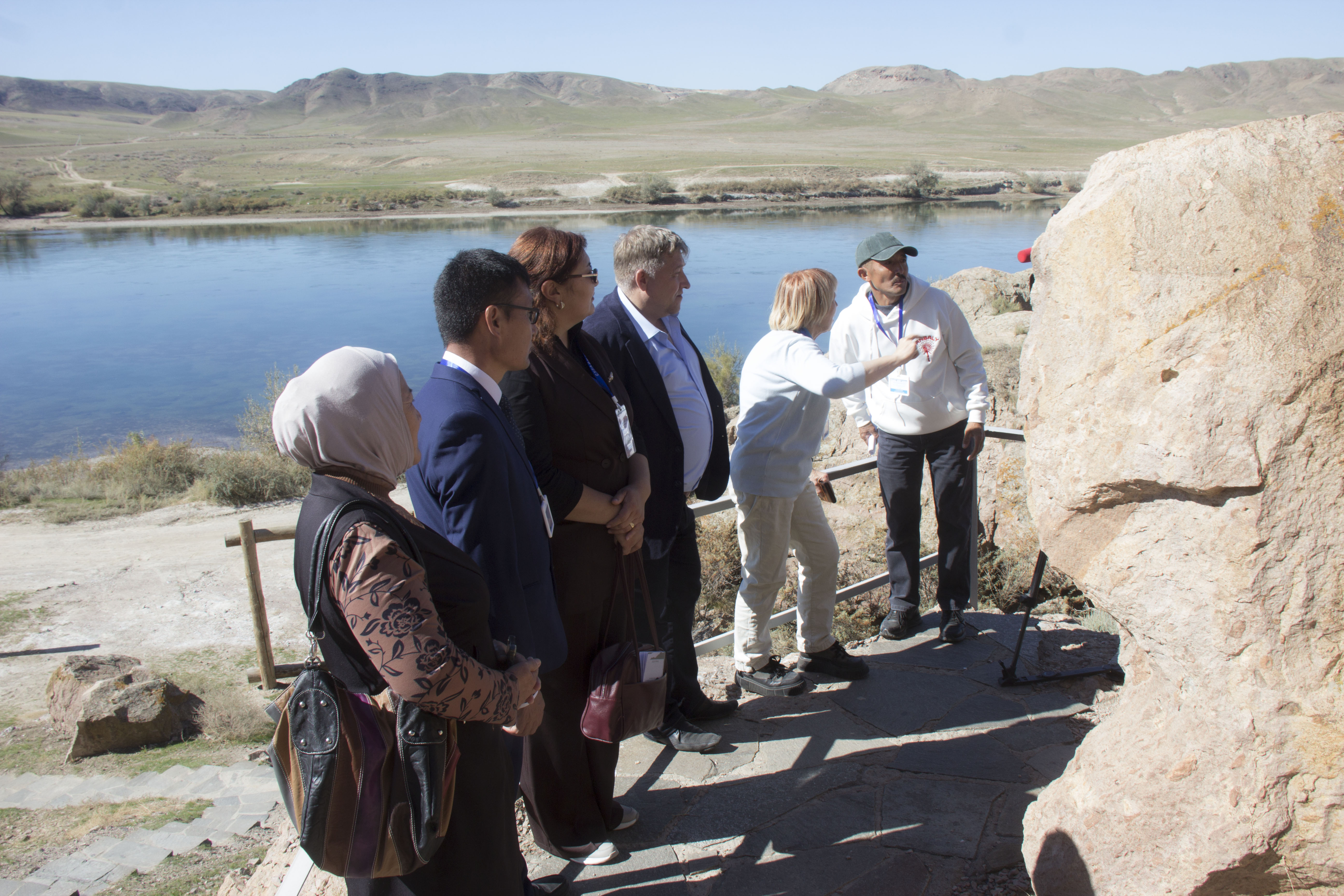 Далалық ғылыми кешке ЮНЕСКО өкілдері (Филипп Деланг), Алматы қаласындағы Үндістан консулы Шри Котаваде Свапнил Шарад, «Гобустан» мемлекеттік тарихи-мәдени қорығы (Әзірбайжан), «Карелияның петроглифтерін басқару орталығы» (Ресей), «Сулайман – Тоо» (Қырғызстан) ұлттық тарихи-археологиялық музей комплексі қызметкерлері, Ш.Ш.Уәлиханов атындағы тарих және этнология институты қызметкерлері және т.б. қатысты. переведи на русский