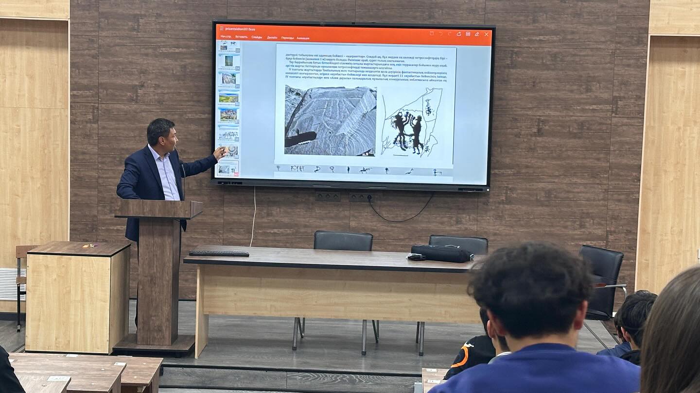 Қазақ ұлттық аграрлық зерттеу университетінде Қазақстан халқының тілдері күніне орай «Ана тілім – елдігімнің айнасы» апталығы аясында «Таңбалы» мемлекеттік тарихи-мәдени және табиғи музей-қорығының қызметкерлері Бекбасов Жәнібек Жанатбекұлы және Мырзабай Дастан Бақытбекұлы «Петроглифтер – ежелгі қоғамның айнасы» тақырыбында ашық дәріс өткізді.