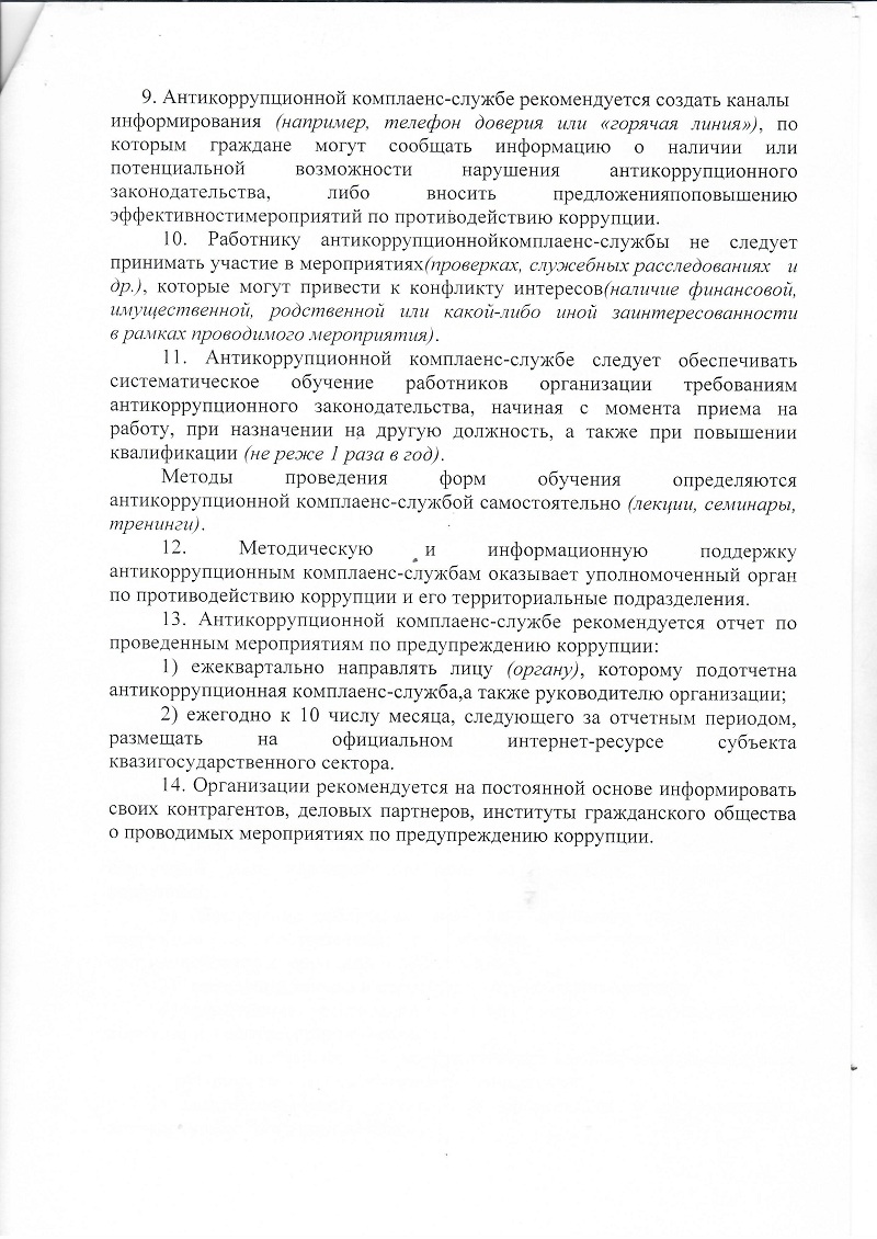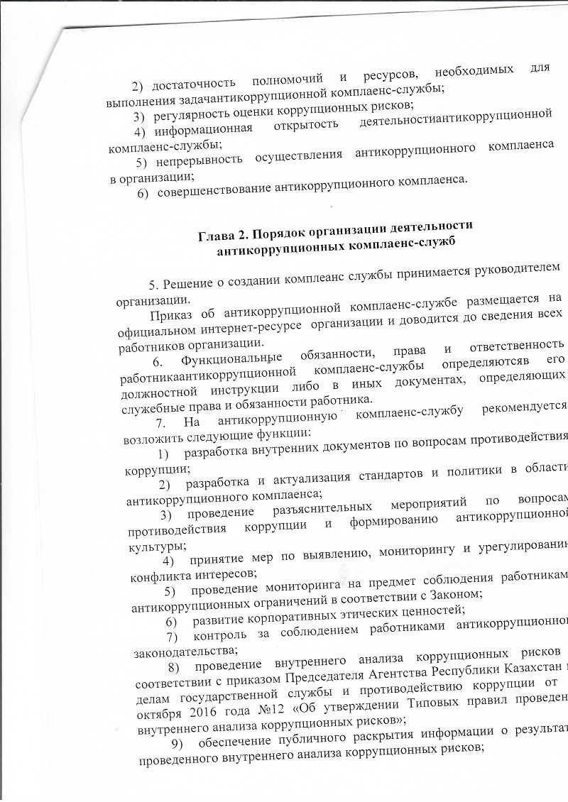 Сыбайластық жемқорлыққа қарсы комплеанс-қызметтер туралы ЕРЕЖЕ