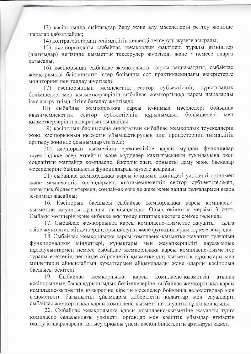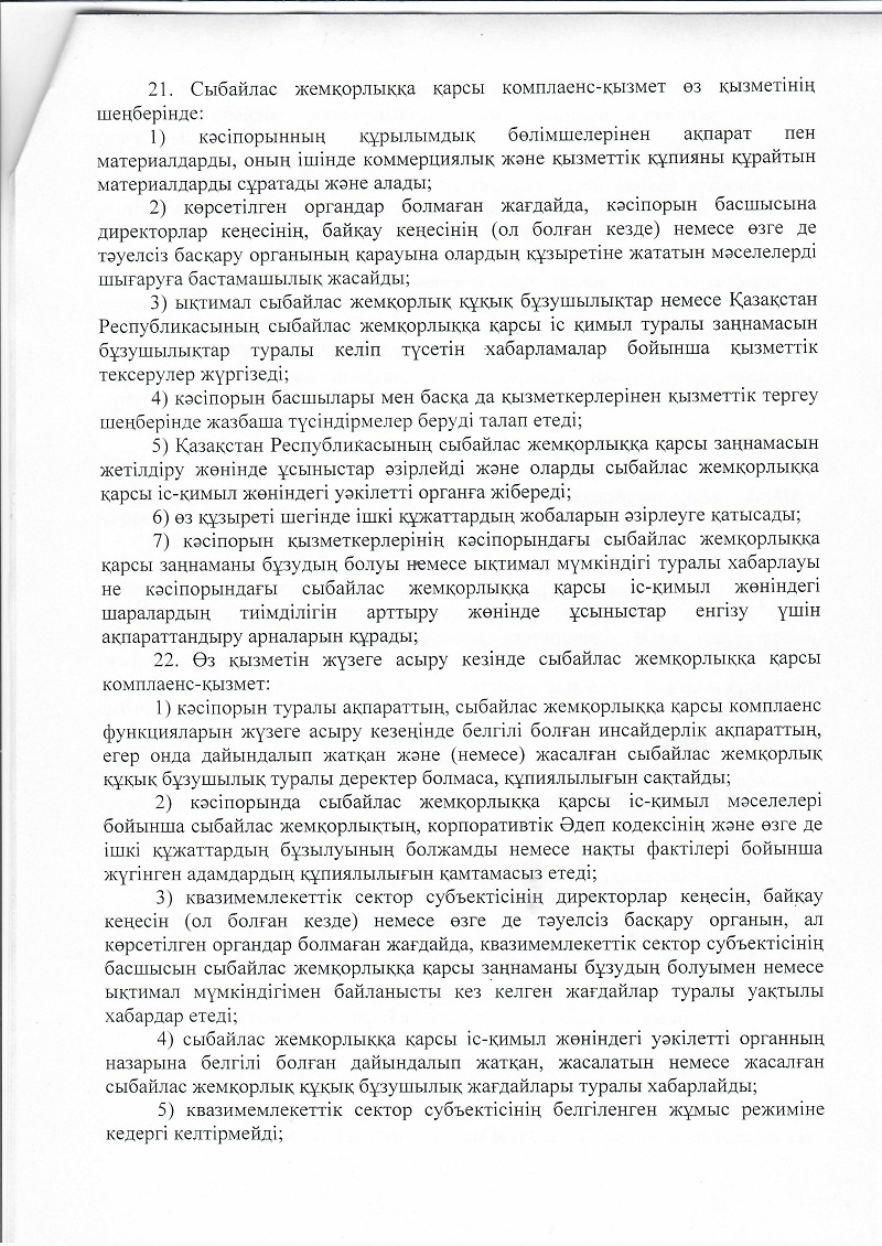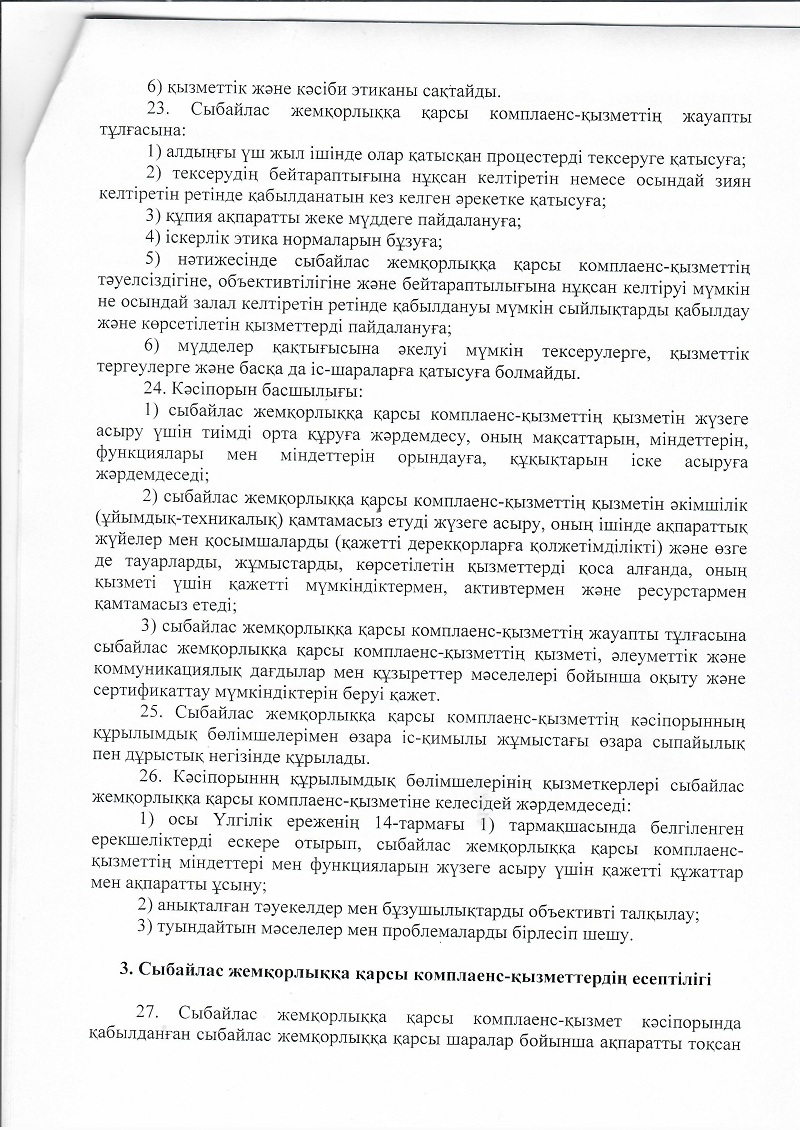 Сыбайластық жемқорлыққа қарсы комплеанс-қызметтер туралы ЕРЕЖЕ