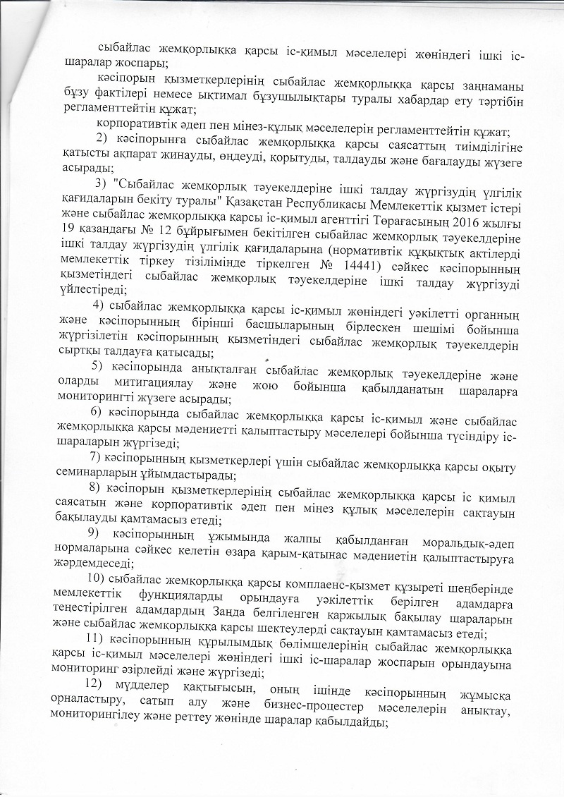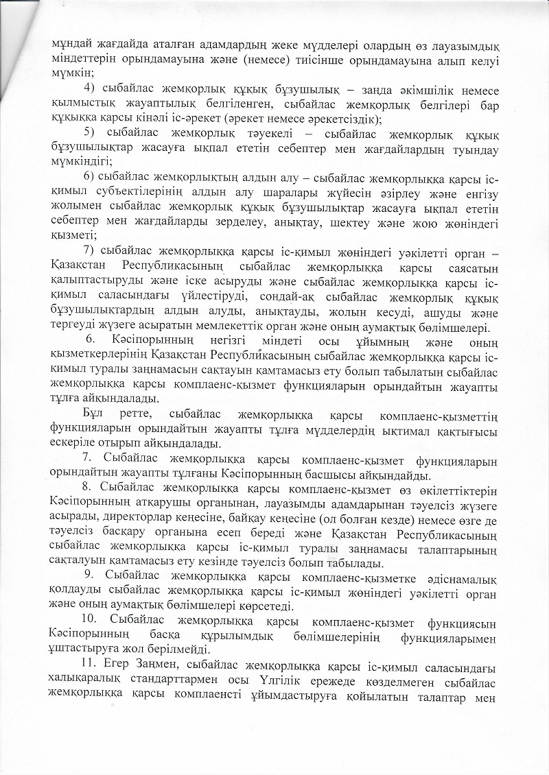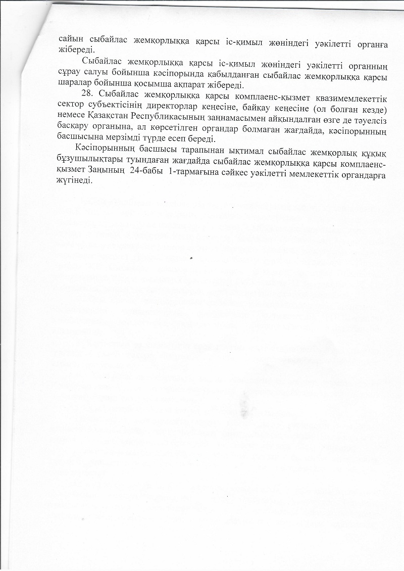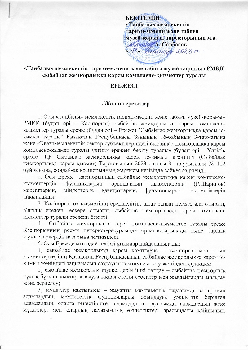 Сыбайластық жемқорлыққа қарсы комплеанс-қызметтер туралы ЕРЕЖЕ